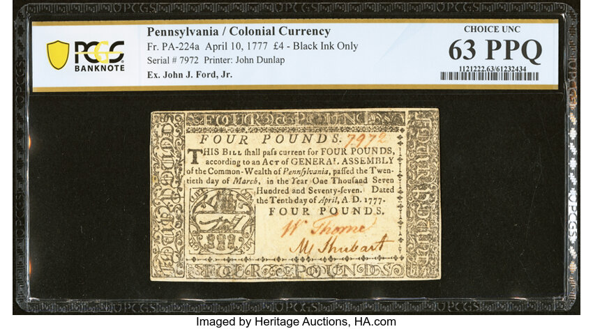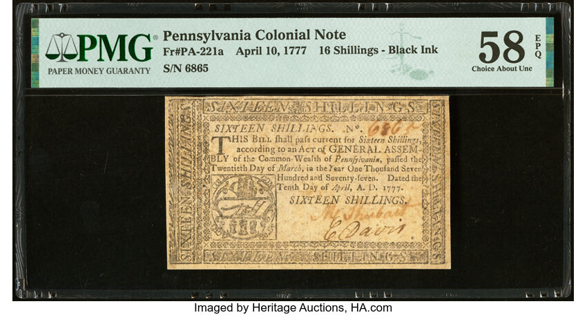 Greysheet Marketplace: Pennsylvania Colonial Currency, Issue of April 10 1777