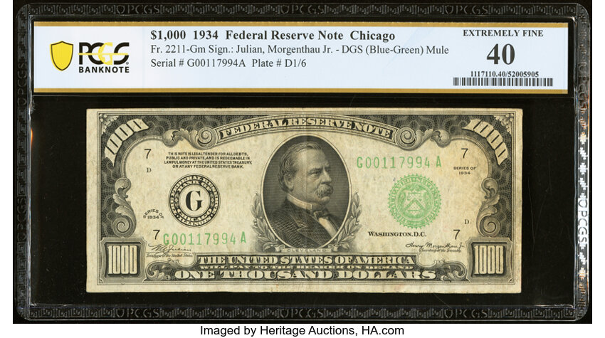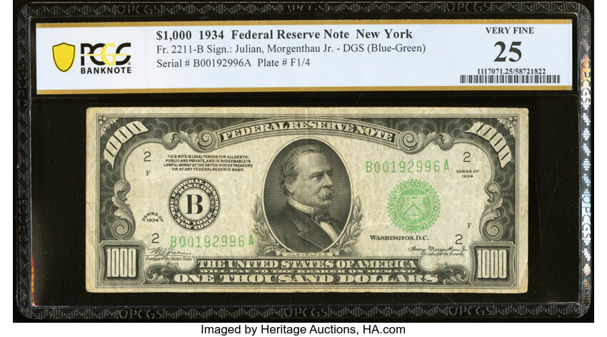 Greysheet Marketplace: Small Size Notes, $1000 Federal Reserve Notes - Small