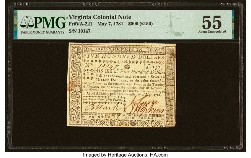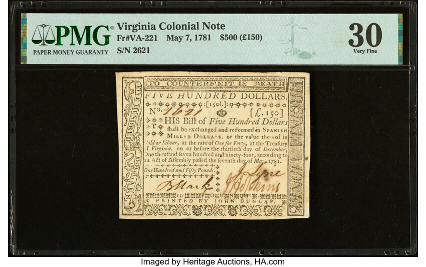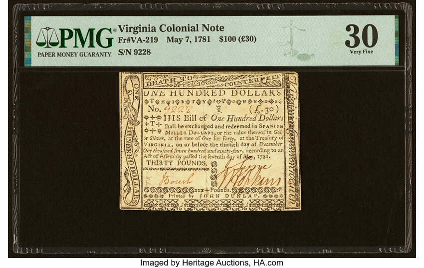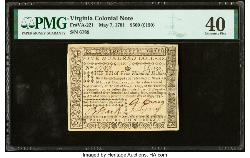 Greysheet Marketplace: Virginia Colonial Currency, Issue of May 7 1781