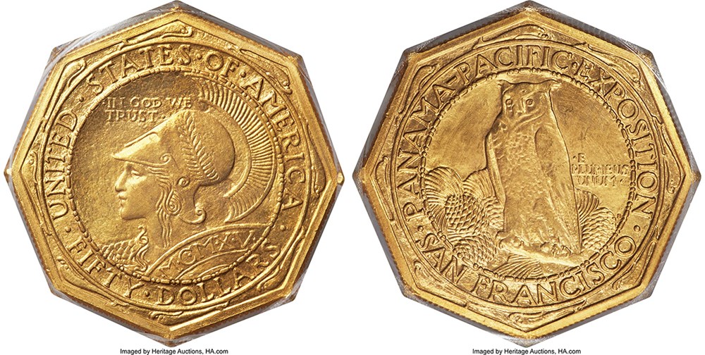 Lot #3294: 1915-S $50 Panama-Pacific 50 Dollar Octagonal MS62 PCGS.