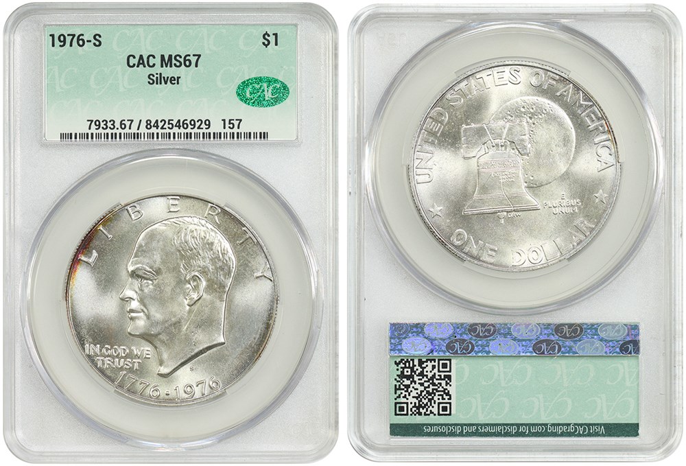 8. On March 22, DLRC sold a CACG graded MS-67 1976-S ‘Silver’ Eisenhower Dollar for $185. On that same day, GreatCollections sold four PCGS graded MS-67 1976-S ‘Silver’ Eisenhower Dollars for $25.30, $25.30, $28.88, and $30.80, respectively.