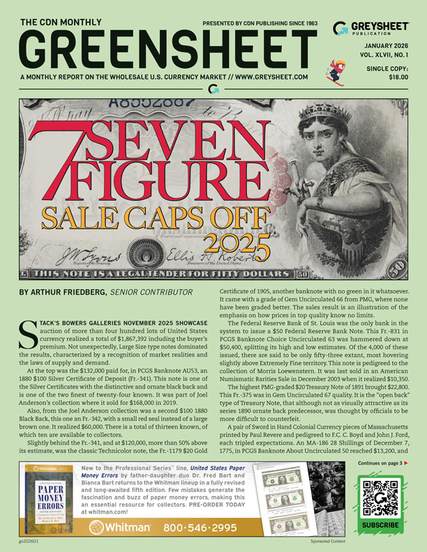 In cooperation with the publisher of Greensheet, Kagin’s is offering the latest 2023 6 th edition of "The Early Paper Money of America" at the discounted price of $100 including shipping or free to successful purchasers of $10,000 or more from the auction.