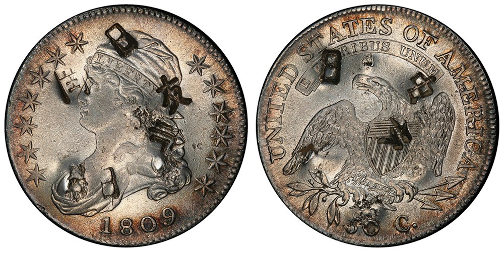 They turned coinage from revolutionary Mexico—which was poorly received by merchants and shroffs in China—into more recognizable and refined United States coins that would be better accepted in the Orient. At least one 1815/2 half dollar has been found with Chinese chop marks upon it; a photo of it is in John M. Willem’s book, The United States Trade Dollar (1965). When examining the graded populations, we see that PCGS has graded 503, while NGC has graded 286, providing evidence that Jones, Firth, and Co. did not ship all of the 1815/2 half dollars to China. However, it appears that the majority of them were sent there. Due to the rarity of this issue, it is highly likely that these figures include multiple resubmissions—and thus are inflated. This issue was indeed used in domestic commerce. According to Walter Breen, the well-known Economite Hoard of Pennsylvania, "included over 100 examples of the rare 1815/2 overdate—the key date of the series."