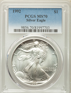 Unlike "show coins" that often brought six digit prices, American Silver Eagles were still affordable for many advanced collectors. In the PCGS Population Report of October 2016, there were only three examples of an MS70 graded 1992 American Silver Eagle.