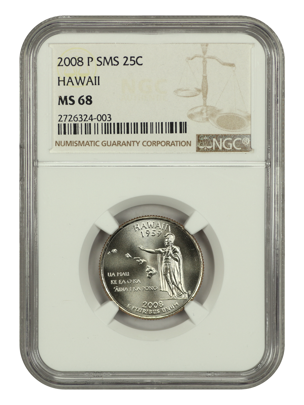 2008-P Hawaii, Satin Finish 25c NGC MS68